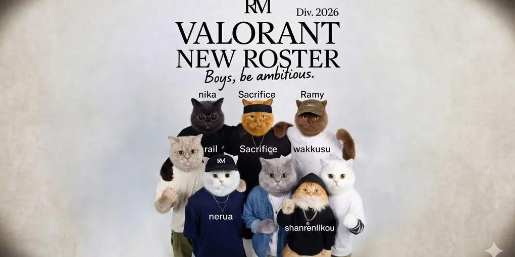 発表ポストには「Boys, be ambitious.」という力強いスローガンが掲げられ、選手たちを猫の姿でデフォルメしたユニークなイラストが使用されています。黒猫の眼鏡姿、オレンジ猫のヘッドバンド、白猫のRMキャップなど、個性豊かなビジュアルが一瞬で話題を呼び、コミュニティから「かわいすぎる」「モチベ爆上がり!」と大きな反響が寄せられています。